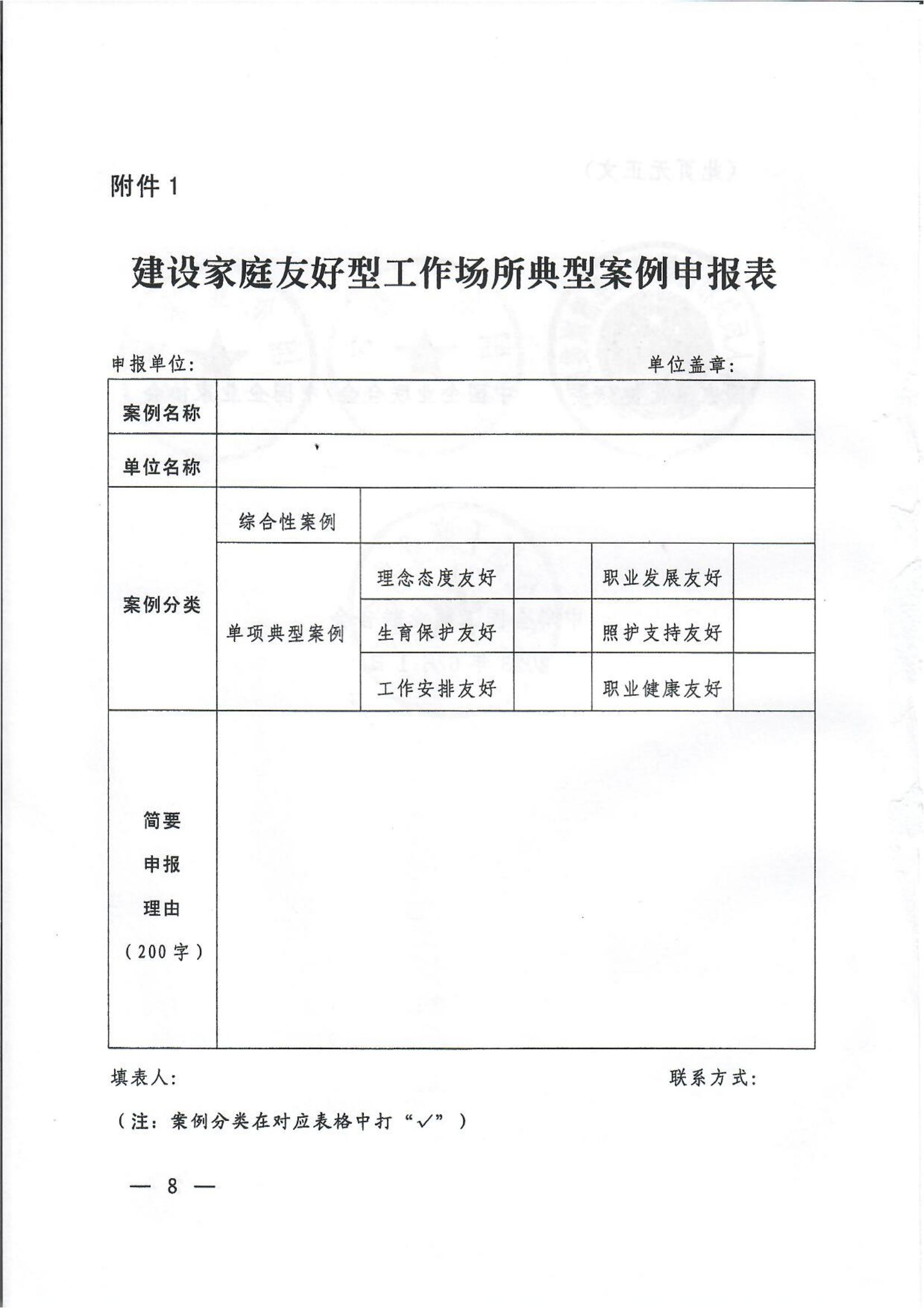 建设家庭友好型工作场所典型案例征集表.doc